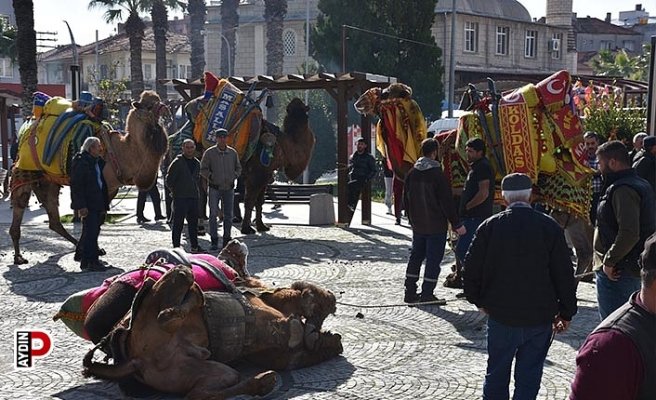 Germencik Belediyesi öncülüğünde gerçekleştirilecek olan deve güreşi öncesinde, sokağa inen pehlivan develer görücüye çıkarken, ilçe turu gerçekleştirildi.