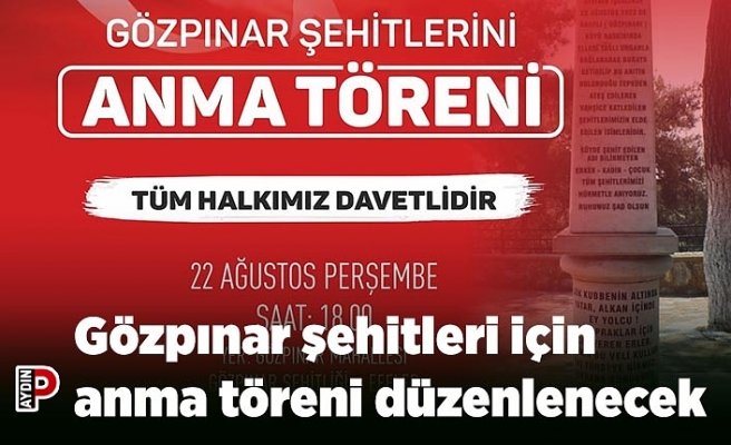 Efeler Belediyesi, Gözpınar Mahallesi Muhtarlığı ve Türk Ocakları Aydın Şubesi iş birliğiyle düzenlenecek etkinlikte Gözpınar Şehitleri’ni anacak.