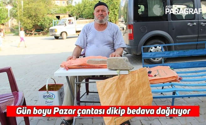Gün boyu Pazar çantası dikip bedava dağıtıyor
