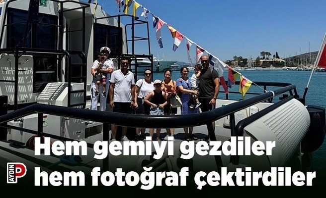 Hem gemiyi gezdiler hem fotoğraf çektirdiler