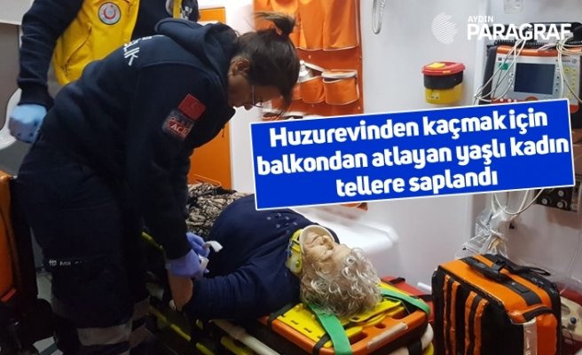 Aydın’ın Efeler ilçesinde, kaldığı huzurevinden kaçmak için balkondan atlayan yaşlı kadın, üzerine düştüğü tel örgünün bacaklarına saplanması sonucu yaralandı.