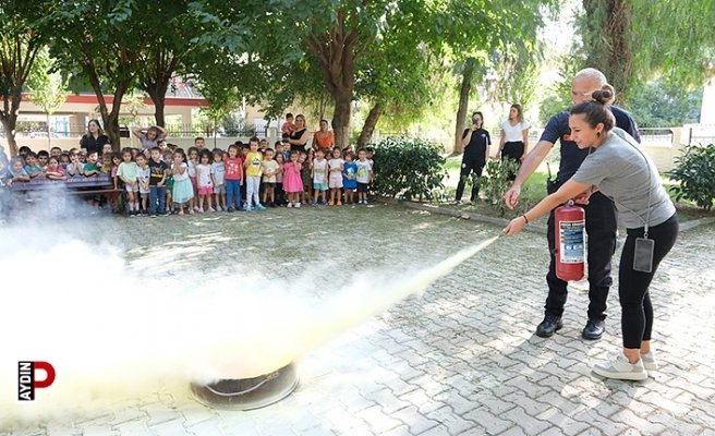 Aydın Büyükşehir Belediyesi Çocuk Gelişim Merkezi öğrencilerinden Elif Bakkal, “Bugün yangın durumunda hemen 112’yi aramam gerektiğini öğrendim. Annemize ve babamıza haber vermem gerektiğini öğrendim. Işık ve çakmakla oynamak yangına sebep oluyormuş. Bunlarla oynanamamak gerektiğini öğrendim” dedi. Eğitim sonunda çocuklara katılım sertifikası da verildi.