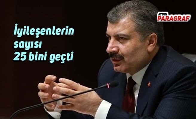 Bakan Koca ayrıca, “Son 24 saatte 3.845 hasta taburcu edildi, 2.861 yeni tanı kondu. Taburcu olanların sayısı yeni hastaların sayısından 984 fazla. Şifa bulanların toplam sayısı ise 25.000’i geçti. Testlerin pozitif çıkma oranı azalıyor. Bu tabloya tedbirle destek şart” dedi.