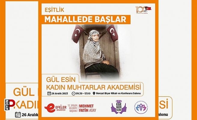 Efeler Belediyesi, Ege Kadın Buluşması Platformu ve Küresel Eşitlik ve Kapsayıcılık Ağı Derneği kadın muhtar ve aza adayları için eğitim programı düzenleyecek. Adını Türkiye’nin ilk kadın muhtarından alan “Gül Esin Kadın Muhtarlar Akademisi” Efeler Belediyesi Nevzat Biçer Nikah ve Konferans Salonu’nda 26 Aralık Salı günü 09.30 ile 17.00 saatleri arasında gerçekleştirilecek.