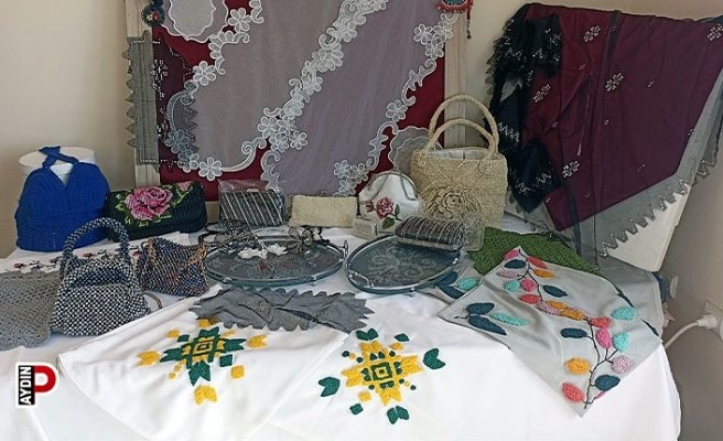 Aydın’ın Efeler ilçesi Avukat Cevat Aldemir Ortaokulu’nda açılan El Sanatları Kursu’na katılan kadınlar yıl boyunca ürettikleri el emeği ürünlerini sergiledi.