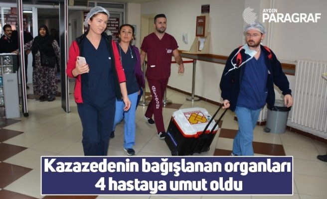 Geçirdiği trafik kazası sonrası Aydın Devlet Hastanesi yoğun bakım ünitesinde tedavi gördüğü sırada beyin ölümü gerçekleşen hastanın, bağışlanan organları 4 hastaya umut oldu.