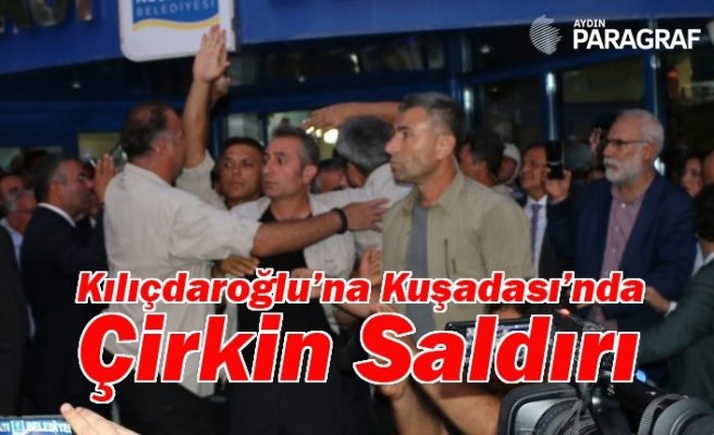 Aydın’da ilçe belediye ziyaretlerini sürdüren CHP Genel Başkanı Kemal Kılıçdaroğlu, Kuşadası Belediye önünde halka seslendi. Konuşması sırasında ezan okunmasıyla Kılıçdaroğlu konuşması ara verdiği sırada kimliği henüz belirlenemeyen bir kişi tarafından yumurtalı saldırı yapıldı. Kılıçdaroğlu’nun önüne düşen yumurta sonra korumalar barikat olusturdu. Emniyet ekipleri tarafından yakalanan saldırgan sorgulanmak üzere Kuşadası İlçe Emniyet Müdürlüğüne götürüldü.
