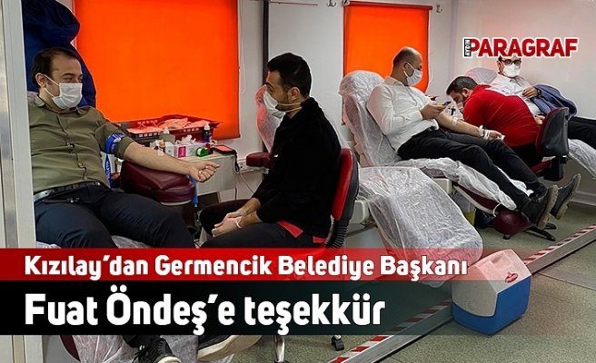 Kızılay ve Germencik Belediyesi iş birliğiyle yapılan kan bağış kampanyalarında sağlanan büyük başarı sebebiyle Aydın Kızılay Kan Merkezi Müdürü Dr. Rıdvan Şenol tarafından Germencik Belediye Başkanı Fuat Öndeş, Belediye Başkan Yardımcısı Muttalip Özsemerci ve belediye çalışanlarına teşekkür belgesi takdim etti. Germencik Belediye binası önünde mobil kan bağış merkezi açan Kızılay’a çalışanlar ve vatandaşlar tarafından önemli ölçüde kan bağışı sağlandığı gözlemlendi.