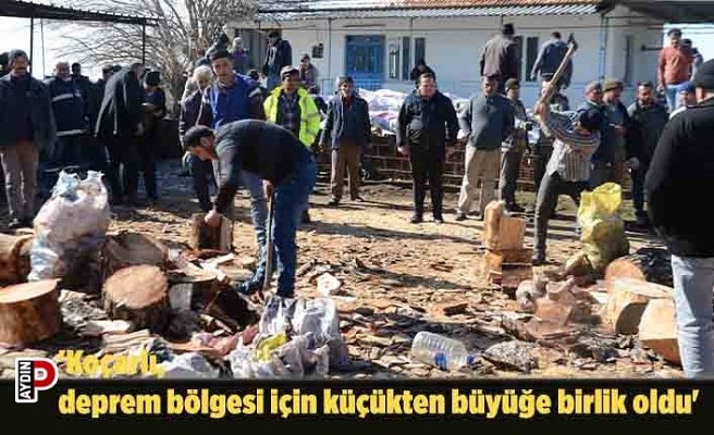 Çallı mahallesinde yaşayan vatandaşların deprem bölgesinde ki ısınma ihtiyacını karşılamak için 1 gün içerisinde hazırladıkları bir tır odun için kendilerine teşekkür eden Koçarlı Belediye Başkanı Nedim Kaplan, “Acılar paylaştıkça azalır. Bu millet birliğini beraberlğini her zaman göstermiştir” dedi.