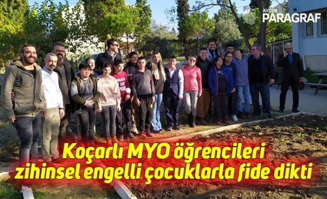 Koçarlı MYO öğrencileri zihinsel engelli çocuklarla fide dikti