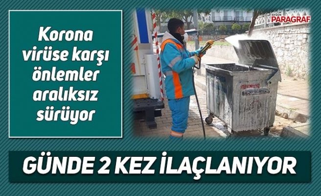 Kentin farklı bölgelerindeki 46’sı yer altında olan toplam 5550 tane çöp konteyneri sabah ve akşam saatlerinde olmak üzere günde iki kez dezenfekte ediliyor.