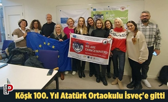 Köşk 100. Yıl Atatürk Ortaokulu’nun; Fransa, İsveç, Portekiz ve Türkiye’den Aydın Ticaret Borsası Bilim ve Sanat Merkezi ortaklığında yürütmekte olduğu ‘We Are Changemakers’ Erasmus+ Küçük Ölçekli Ortaklıklar Projesi’nin 2. hareketliliği eğitim, öğretme ve öğrenme faaliyetleri çerçevesinde kısa dönemli ortak personel eğitimi İsveç’in Stockholm şehrinde gerçekleştirildi. Eğitime Köşk 100. Yıl Atatürk Ortaokulu’nu temsilen Matematik Öğretmenleri Zeynep Ceren Çiftsüren ve Mehmet Kazancı ile Müzik Öğretmeni Sakine Gülcek katıldı.