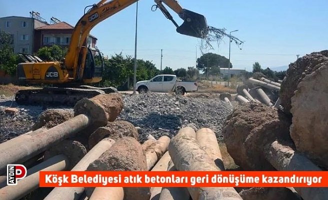 Aydın’ın Köşk ilçesi merkezinde elektrik tellerinin yer altına alınması çalışmasında meydana çıkan atık beton direkler geri dönüşüme kazandırılıyor.