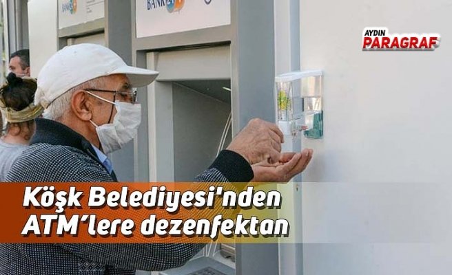 Köşk Belediyesi koronavirüsle mücadele çalışmalarına bir yenisi ekledi. Belediye ekipleri vatandaşların yoğun olarak kullandığı bankamatiklere el dezenfektanı yerleştirdi. İlçedeki bankamatiklerin yan yana olduğunu, ATM’lerde de çok fazla yoğunluk oluştuğunu dile getiren Köşk Belediye Başkanı Nuri Güler, “Vatandaşın sağlığı her şeyden daha önemli. Bugüne kadar Köşk’te koronavirüse karşı çok sayıda tedbir aldık. İlçemizdeki yedi bankamatik de çok sık kullanılıyor. İnsan yoğunluğunun çok olduğu ATM’lerde salgın riskini azaltmak için el dezenfektanı koymaya karar verdik” dedi.