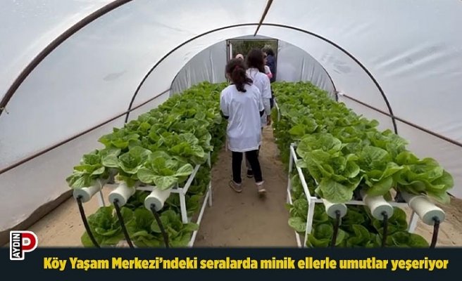 Aydın’ın Yenipazar ilçesindeki Ali Kuşçu Matematik Evi ve Köy Yaşam Merkezi’ndeki sera alanında öğrenciler topraksız tarım yapıyor.