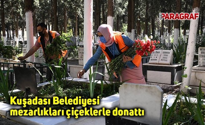 Kuşadası Belediyesi Sosyal Yardım İşleri Müdürlüğü, Kovid 19 tedbirleri nedeniyle bayram öncesinde yakınlarının ve sevdiklerinin mezarlarını ziyaret edemeyen vatandaşlar için kentteki tüm mezarlara çiçek bırakırken Temizlik İşleri Müdürlüğü ise mezarlıklarda detaylı temizlik çalışması yaptı.
