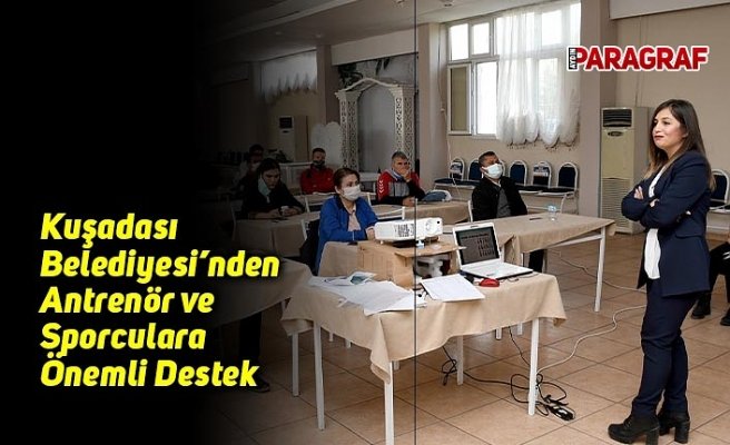 Kuşadası Belediyesi, Kuşadası Belediyespor Kulübü ve Kuşadası Gençlik ve Spor İlçe Müdürlüğü ile imzaladığı iş birliği protokolü kapsamında, kentte daha sağlıklı bir sporcu nesli yetiştirilmesi için antrenörlere yönelik bir eğitim semineri düzenledi. Belediye Düğün Salonu’nda pandemi kurallarına uygun olarak gerçekleşen seminere Sağlık İşleri Müdürlüğü’nde görevli Sporcu Diyetisyeni Aysen Arıcan Öz, Kuşadası Belediyesi Psikososyal Destek Merkezi Uzman Psikoloğu Candan Atak, Kuşadası Gençlik ve Spor İlçe Müdürü Ramazan Oğuz Verim ile antrenörler katıldı.