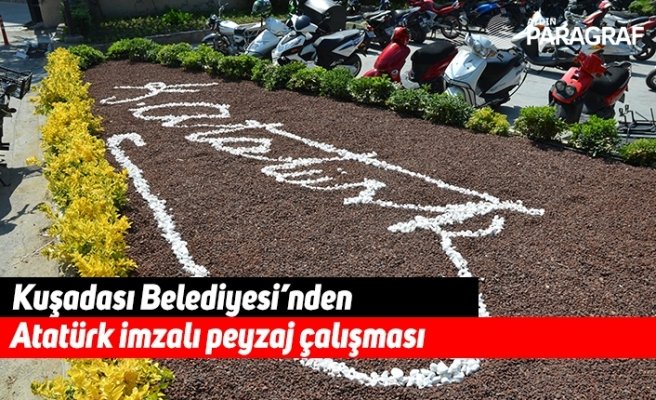 Kuşadası Belediyesi Camikebir Mahallesi Emek Sokak’ta bulunan Sait Gürpınar parkı içerisine Ulu Önder Mustafa Kemal Atatürk’ün imzasının yer aldığı bir peyzaj çalışması uyguladı. Dekoratif taşlar kullanılarak hazırlanan Kemal Atatürk imzası vatandaşların beğenisini topluyor.