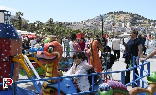 Kuşadası’nda 23 Nisan coşkusu yaşayan çocuklar, İsmail Cem Dostluk ve Barış Meydanı’nda, Kuşadası Belediyesi tarafından kurulan lunapark oyuncaklarıyla doyasıya eğleniyor. Güneşli havayı fırsat bilerek aileleriyle birlikte alana gelen çocuklar, oyuncaklar aracılığıyla sosyalleşme imkanı da buluyor.