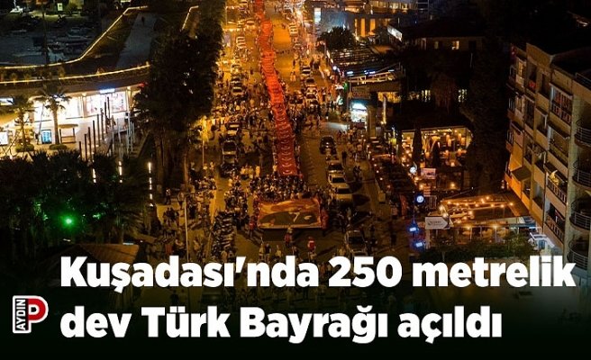 Kuşadası'nda 250 metrelik dev Türk Bayrağı açıldı