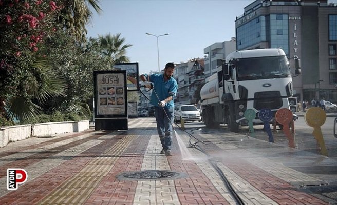 Turizmin önemli kentlerinden Kuşadası’nda, Kuşadası Belediyesi’ne bağlı Temizlik İşleri Müdürlüğü ekipleri, hijyen ve dezenfeksiyon çalışmalarını ara vermeden sürdürüyor. Her gün düzenli olarak kent genelinde temizlik yapan ekipler, belirlenen program dahilinde de farklı mahallelere yoğunlaşıyor. Bu çerçevede Temizlik İşleri Müdürlüğü ekiplerinin son durağı Atatürk Bulvarı ile Türkmen Mahallesi oldu. Çalışmada ekipler önce dünkü sağanakta sahil bandında biriken kum, moloz ve yabancı maddeleri temizledi. Ardından Türkmen Mahallesi’ne geçerek cadde, sokak ve meydanları insan sağlığı ve çevreye zarar vermeyen deterjanlar kullanılarak köpüklü suyla yıkandı. Ayrıca galvanizli ve yer altına monte edilmiş çöp konteynerleri de yüksek sıcaklıktaki su ve özel solüsyonlar aracılığıyla kir ve kokudan arındırıldı.