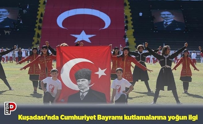 Bir gün öncesinde Atatürk büstüne çelenk konulması ile başlayan kutlamalar, sabah saatlerinde ilçe kaymakamlık binasında gerçekleştirilen tebrik töreniyle devam etti. Kuşadası Kaymakamı Sadettin Yücel ve Kuşadası Belediye Başkanı Ömer Günel, kaymakamlık makamında resmi kurum ve sivil toplum kuruluşu temsilcilerinin kutlamalarını kabul etti. 29 Ekim Cumhuriyet Bayramı kutlamaları, kaymakamlık makamındaki kabulün ardından Özer Türk Stadı’nda düzenlenen törenle sürdü. Resmi geçit töreni ile çeşitli etkinlik ve gösterilerin yer aldığı Cumhuriyet Bayramı kutlamalarına Kuşadalılar büyük ilgi gösterdi. Etkinlikleri stadın kapalı tribününde oturan yaklaşık 4 bin kişi izledi. Kuşadalılar, Belediye Bandosu’nun çaldığı marşlar eşliğinde Cumhuriyet Bayramı coşkusuna ortak oldu. Çeşitli halk dansları toplulukları tarafından sergilenen gösteriler Cumhuriyet Bayramı kutlamalarına büyük renk kattı. Törende Kuşadası Kaymakamı Sadettin Yücel, Belediye Başkanı Ömer Günel ve protokol üyeleri Cumhuriyet Bayramı nedeniyle düzenlenen şiir yarışmasında dereceye giren öğrencilere ödüllerini verdi.