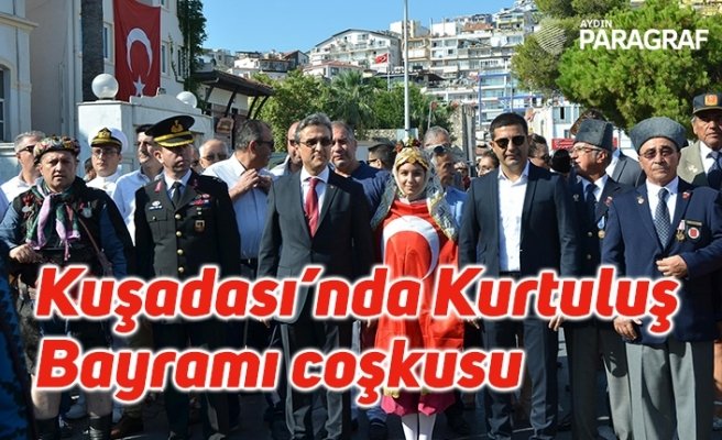 Kurtuluş kutlamaları, esareti temsil eden kız çocuğunun Efeler tarafından kurtarılışını anlatan temsili kurtuluş töreninin ardından Kuşadası Kaymakamı Sadettin Yücel ve Kuşadası Belediye Başkanı ömer Günel’in Efeler ile birlikte Kuşadası Hükümet Konağı balkonundan halkı selamlaması ile başladı.
