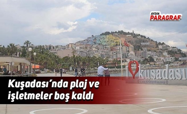 Kuşadası’nda yazın tatilcilerin yoğun olarak uğrayıp adım atacak yer bırakmadığı plajlar ile turistik işletmeler normalleşme sürecinin ilk gününde havanın yağışlı olması nedeniyle boş kaldı.