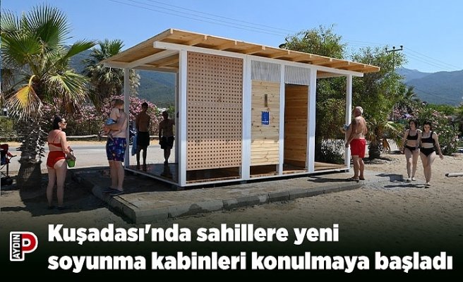 Kuşadası'nda sahillere yeni soyunma kabinleri konulmaya başladı