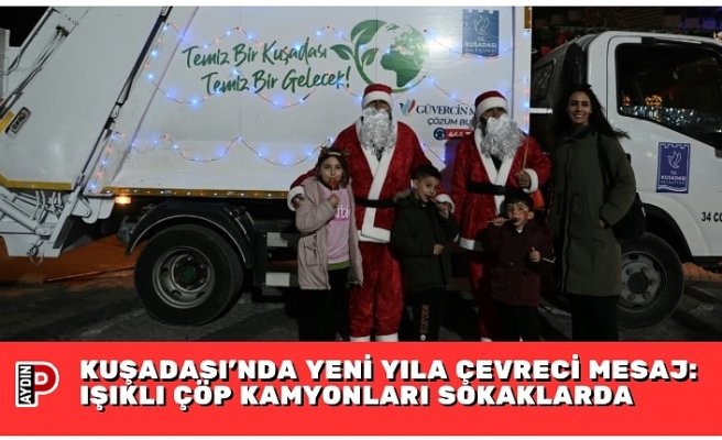 Kuşadası Belediyesi, yeni yıl öncesinde çevre temizliğine dikkat çekmek amacıyla farkındalık yaratan renkli bir etkinliğe imza attı. Temizlik İşleri Müdürlüğü’ne bağlı çöp kamyonları ışıklarla süslenirken, Noel Baba kostümü giyen belediye personeli çocuklara şeker dağıttı, çevre bilinci mesajları verdi.