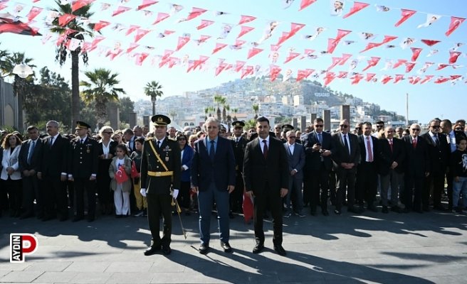 Kuşadası’nda Cumhuriyet’in ilanının 101’inci yıldönümü kutlamaları Atatürk Meydanı’nda düzenlenen çelenk sunma töreni ile başladı. Kutlamalar, 29 Ekim Salı günü gerçekleştirilecek çeşitli etkinliklerle devam edecek.