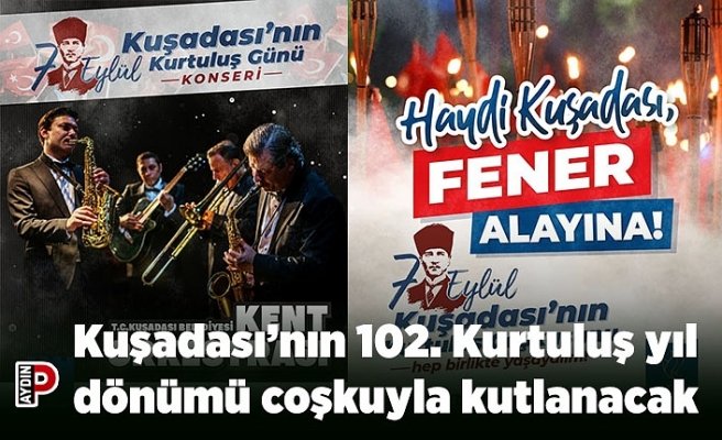 Kuşadası’nın düşman işgalinden kurtuluşunun 102. yıl dönümü, kentte düzenlenecek çeşitli etkinliklere kutlanacak. Resmi törenle başlayacak olan kutlamalar, fener alayı ve Kuşadası Belediyesi Kent Orkestrası konseri ile sürecek.