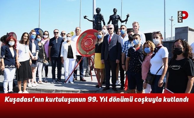 Kuşadası’nın düşman işgalinden kurtuluşunun 99’uncu yıl dönümü büyük bir coşkuyla kutlandı. Kutlamalar sabah saat 09.45’te kaymakamlık binasında gerçekleşen kız çocuğunun Efeler tarafından kurtarılışını anlatan temsili kurtuluş töreniyle başladı. Etkinlikler Atatürk Meydanı’nda düzenlenen resmi törenle devam etti. Törene çok sayıda vatandaşla beraber Kuşadası Kaymakamı Sadettin Yücel, Kuşadası Belediye Başkan Yardımcısı Oğuzhan Turan, Kuşadası İlçe Emniyet Müdürü Mehmet Ali Berksoy, siyasi parti ve sivil toplum kuruluşlarının temsilcileri ile değer protokol üyeleri katıldı. Törende ilk olarak Kuşadası Kaymakamı Sadettin Yücel ile Belediye Başkan Yardımcısı Oğuzhan Turan, Atatürk Anıtı’na çelenk bıraktı.  Saygı duruşu ve İstiklal Marşı’nın okunmasının ardından Kuşadası Belediye Başkan Yardımcısı Oğuzhan Turan, günün anlam ve önemini belirten konuşmasını yaptı.