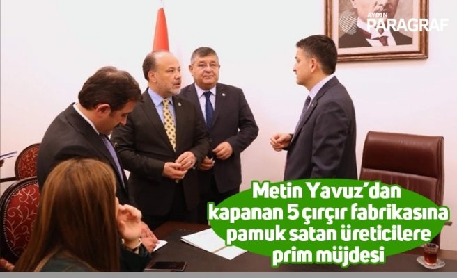 Söke’de usulsüz pamuk alımı yaptığı gerekçesiyle mahkeme kararıyla kapatılan 5 çırçır fabrikasına, 20 milyon ton pamuk veren üreticinin destekleme primlerinden mağdur olmamaları için Tarım ve Orman Bakanı Bekir Pakdemir’li ile görüşme yapan Aydın Milletvekili ve AK Parti MKYK Üyesi Metin Yavuz, kendine ait sosyal medya hesabından primlerin ödeneceğini açıkladı.