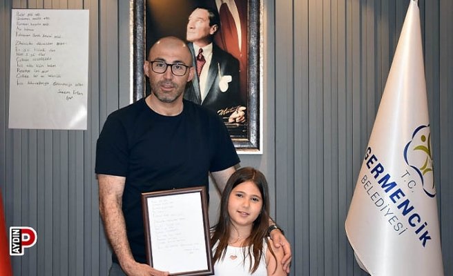 Germencik’te yaşayan 10 yaşındaki Sanem Ertan, Germencik Belediye Başkanı Burak Zencirci için yazdığı akrostiş şiiri hediye etti.