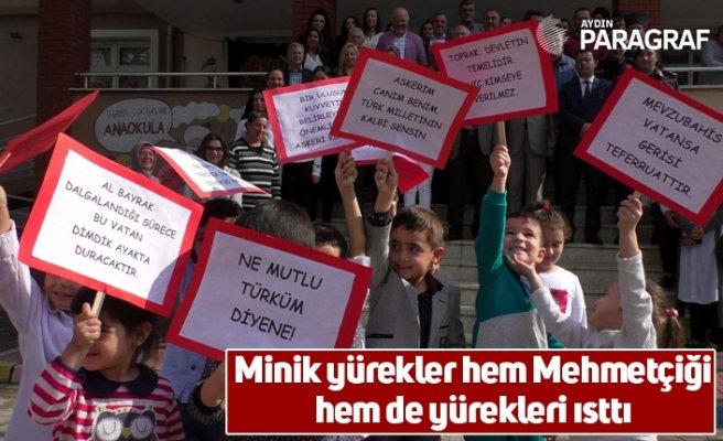 Aydın’ın Nazilli ilçesinde anaokulu öğrencileri ‘Minik eller çalışsın, askerlerimiz ısınsın’ sloganı ile elleriyle hazırladıkları atkı, bere ve duygularını ifade eden mektupları sınırda görev yapan Mehmetçiğe ulaştırılması için yetkililere teslim etti.