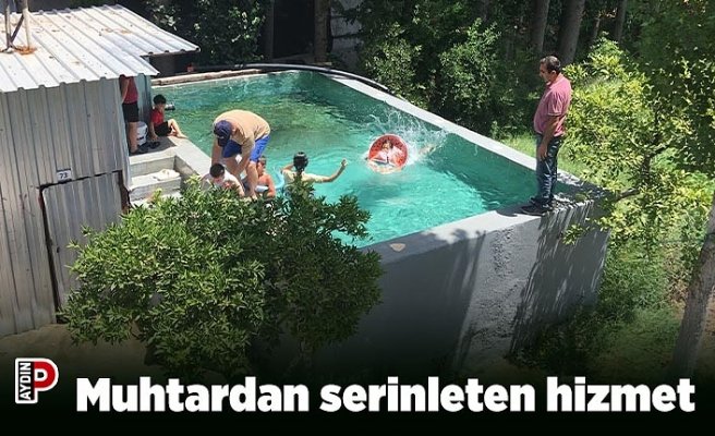 Aydın’ın Germencik ilçesinde yeni seçilen Neşetiye Muhtarı Muhat Halitoğlu, çocukları serinleten bir hizmet hayata geçirdi. Halitoğlu, evinin bahçesindeki havuzu doldurup çocukların yüzmesini sağlıyor.