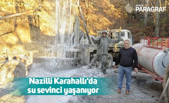 Nazilli’nin Karahallı Mahallesi’nde devam eden sondaj çalışmalarında suya ulaşıldı. Mahalle muhtarı Ersun Özdemir, mahallelilerin büyük sevinç yaşadığını belirterek Aydın Büyükşehir Belediye Başkanı Özlem Çerçioğlu’na teşekkür etti.