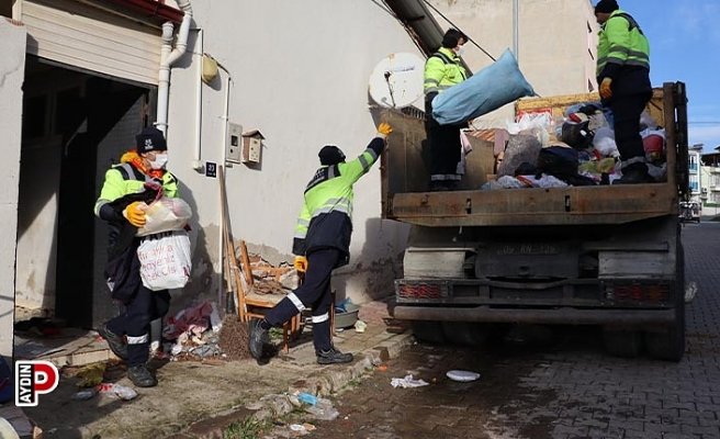 Nazilli Belediyesi ekipleri, Zafer Mahallesi’nde komşularının kötü koku nedeniyle ihbar ettiği vatandaşın evini 5’inci kez temizledi.