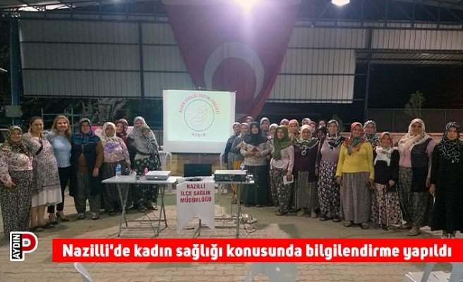 Aydın Valisi Hüseyin Aksoy’un eşi Hülya Aksoy’un koordinatörlüğünde başlatılan ‘Kadın Sağlığı Eğitim Projesi’ çerçevesinde Nazilli ilçesi Demirciler Mahallesi’nde kadınlara yönelik bilgilendirme çalışmaları yapıldı.
