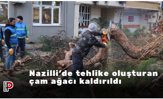 Nazilli’de tehlike oluşturan çam ağacı kaldırıldı