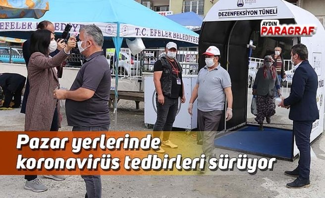 Koronavirüsün ülkemizde görüldüğü ilk günden bu yana başta dezenfeksiyon işlemleri olmak üzere birçok çalışmaya imza atan Efeler Belediyesi, özellikle halkın yoğun olduğu semt pazarlarında önlemler alıyor. Tek bir noktadan dezenfeksiyon tünelinden geçilerek girilen pazar yerlerinde örnek bir çalışmaya imza atıldı. Efekent, Fatih, Eski Otogar ve Nevzat Biçer Parkı yanında kurulan yeni pazar yerinde girişlerde ateş ölçümü yapıldı, satış yapan esnaflara ve vatandaşlara maske dağıtımı gerçekleştirildi. Bu sayede Efelerli vatandaşların alışverişlerini daha güvenli bir şekilde yapmaları sağlandı. Pazar yerlerinde maske dağıtımının rutin olarak devam edeceği bildirildi.
