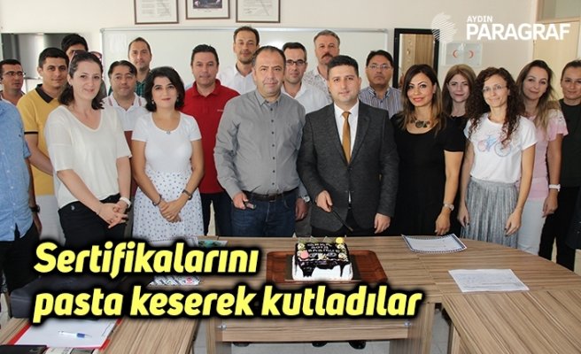 Sertifikalarını pasta keserek kutladılar