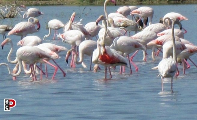 Bahar ayı ile birlikte Söke Ovası’nda sezon hazırlıkları başlarken allı turnalar, toprağın tuzluluğunun azalması için yapılan uygulama ile suların kapladığı tarlalara indi. Balerin gibi süzülen flamingolar (Allı Turna) Söke Ovası’nda eşsiz manzara oluşturdu.