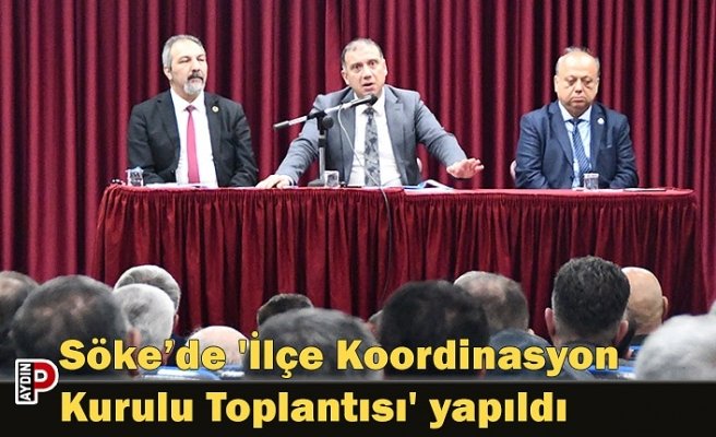 Söke Recep Yazıcıoğlu Kültür Salonu’nda daire müdürleri, muhtarlar ve sivil toplumun sektör temsilcilerinin katılımıyla, Söke Kaymakamı Ümit Hüseyin Güney başkanlığında İlçe Koordinasyon Kurulu Toplantısı yapıldı. Toplantıda Söke Belediye Başkan Vekili Veli Devrim Yerli de bulundu.