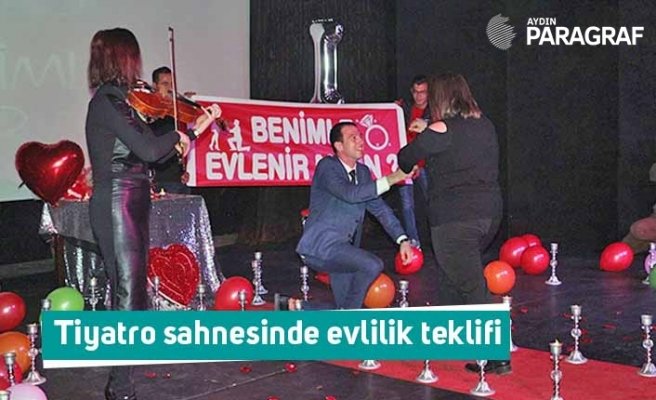 Kuşadası Belediyesi personeli Savaş Yüksel, kız arkadaşı İrem Özkazak’a,14 Şubat Sevgililer Günü’nde sürpriz yaparak tiyatro sahnesinde evlilik teklifinde bulundu.