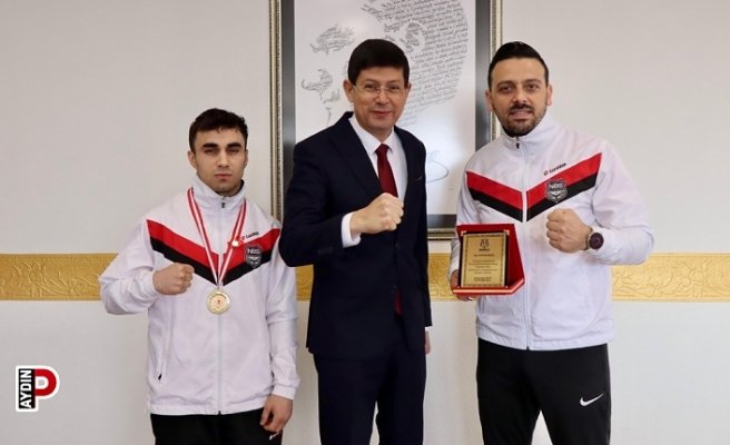 Naci Oral Genç Erkekler ve Kadınlar Türkiye Ferdi Boks Şampiyonasında ikinci kez Türkiye şampiyonu olan Nazilli Belediyespor boksörü Tevfik Akkaş ve Milli Takım Baş Antrenörü Yavuz Kılıç, Nazilli Belediye Başkanı Kürşat Engin Özcan’ı makamında ziyaret etti.