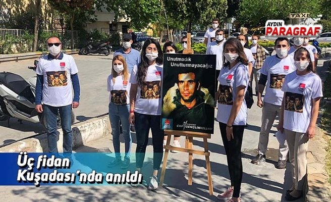 Deniz Gezmiş, Hüseyin İnan ve Yusuf Aslan katledilişlerinin 48’inci yılında Kuşadası’nda unutulmadı. CHP Kuşadası ilçe örgütü öncülüğünde düzenlenen tören koronavirüs nedeniyle sosyal mesafe dikkate alınarak gerçekleşti. Tören Gezmiş ve arkadaşları için saygı duruşu ve ardından toprağa üç fidan dikilmesiyle sona erdi.