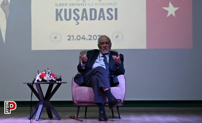 Tarihçi, akademisyen ve yazar Prof. Dr. İlber Ortaylı, Kuşadası’nda bir dernek tarafından düzenlenen etkinlikte Kuşadalılarla buluştu. Söyleşisinde Kuşadası’nın turizmin yanında aynı zamanda bir tarım kenti olduğuna dikkat çeken Ortaylı, “Bu özelliğin kaybolmaması için lütfen zeytinlik ve meyve bahçeleri satın alın” dedi.