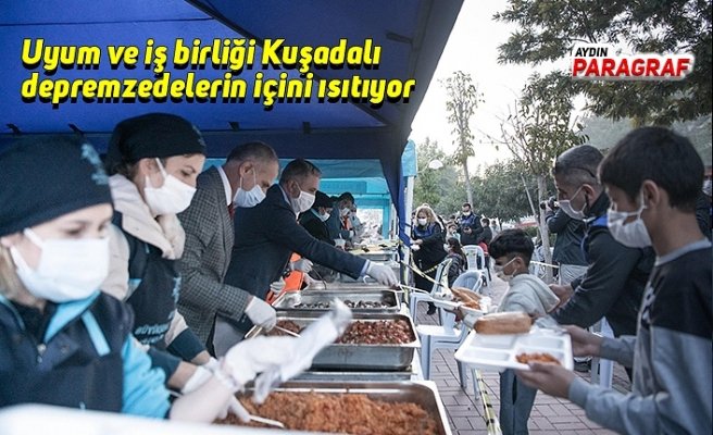 Depremde evleri hasar gördüğü veya sürmekte olan artçı sarsıntılar nedeniyle evlerine girmek istemediği için geceyi dışarıda geçiren vatandaşların mağdur olmaması için çalışan Aydın Büyükşehir Belediyesi ve Kuşadası Belediyesi ekipleri gerekli tüm tedbirleri alıyor. Aydın Büyükşehir Belediyesi ekipleri, İkiçeşmelik Parkı başta olmak üzere vatandaşların toplanma alanlarında sıcak yemek dağıtımını sürdürürken Kuşadası Belediyesi ise kentin 4 farklı noktasında ikram araçları aracılığıyla sıcak çorba ve kumanya dağıtımı yapıyor.